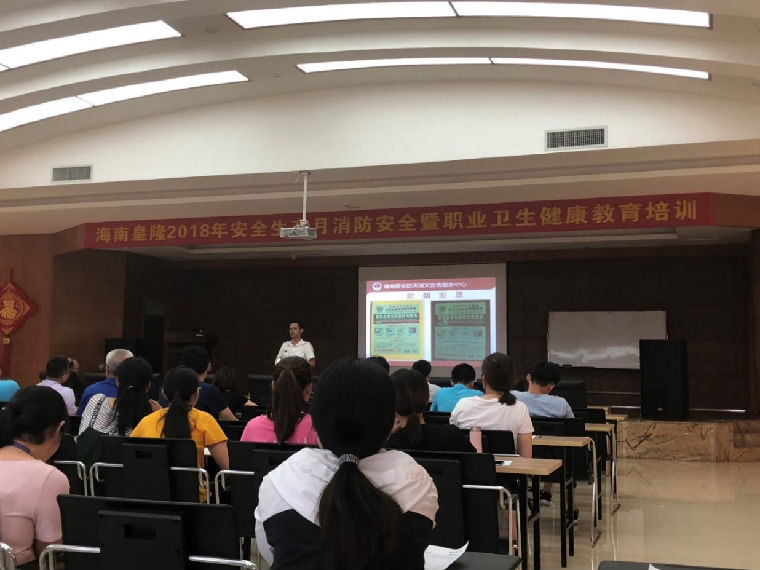 為認真貫徹黨的十九大精神及習近平總書記“弘揚生命至上、安全第一”的思想,按照全國“安全生產月”有關活動的系統部署,圍繞“生命至上、安全發展”主題,及省、市、高新區各級政府關于舉辦“安全生產瓊州行”的指示精神,海南皇隆制藥股份有限公司于2018年6月21日下午15:00,舉辦了海南皇隆2018年安全生產月消防安全暨職業衛生健康教育培訓。