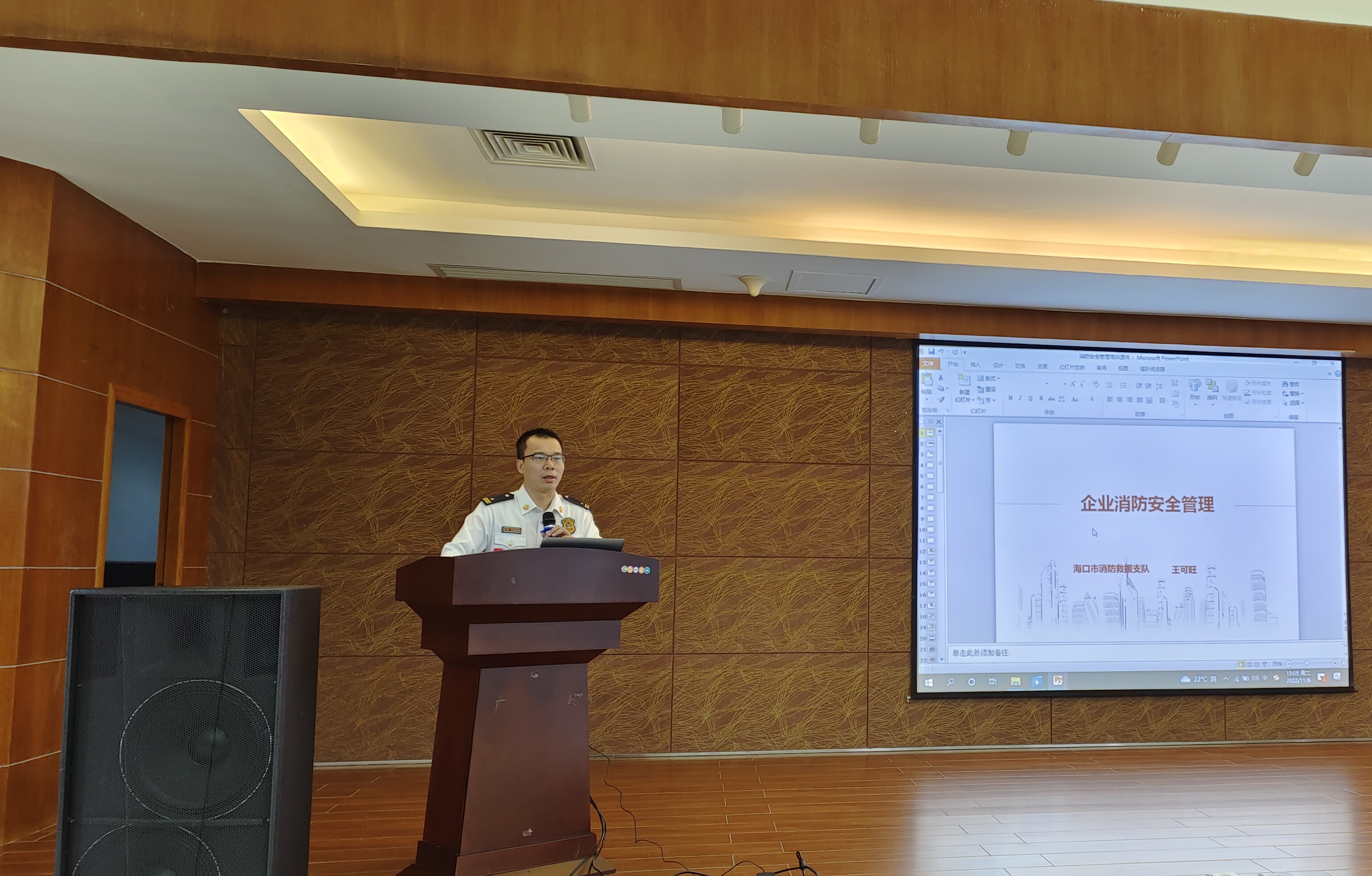 海口消防園區派駐組王可旺參謀為與會人員進行消防培訓