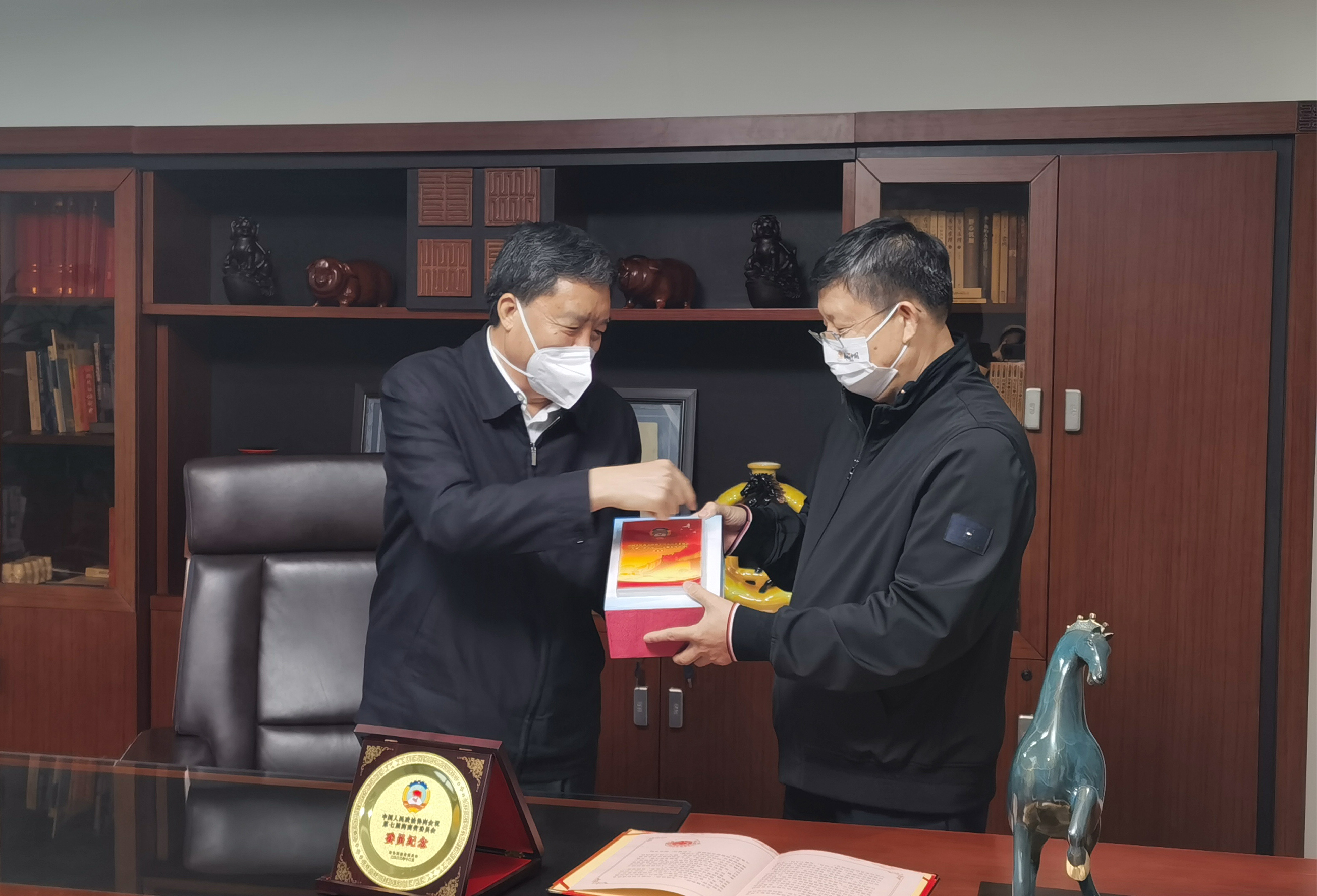 “作為一名普通的省政協委員,毛主席能親自上門來看望我,感到無比榮幸!”陳董對毛萬春主席專程到來公司慰問表示衷心的感謝。隨后,毛萬春主席向陳董鄭重地頒發了《中國人民政治協商會議第七屆海南省委員會委員紀念》、《第七屆海南省政協優秀提案(社情民意、大會發言)匯編》、《致七屆省政協委員的感謝信》。毛主席深情的說道:你作為第七屆政協委員,五年期間,認真履職,獻計獻策,向你表示衷心的感謝。陳董聽到毛主席一席話,激動的說道:“一屆政協人,一生政協情”。