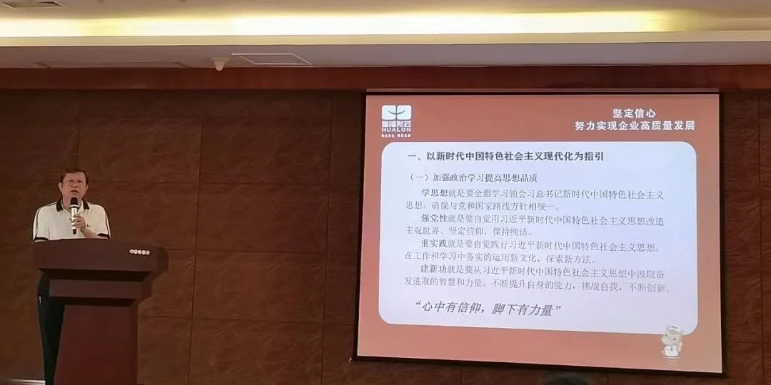 6月30日,海南皇隆制藥黨支部書記陳益智組織全體黨員、領導干部和員工400余人在公司大會議室開展主題教育學習,他結合習近平新時代中國特色社會主義思想闡述了如何發揮政治引領和黨員先鋒模范作用,結合黨課教育客觀務實分析了公司當前在行業中面臨的挑戰和機遇,全體與會人員深受教育和鼓舞,均表示爭做“兩個確立”的堅定擁護者、“兩個維護”的忠實踐行者,創優爭先、發揮先鋒模范作用。